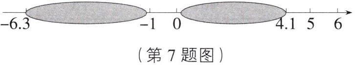 C [解析]根据数轴的特点,-6.3到-1之间的整数有-6,-5,-4,-3,-2,共5个,0到4.1之间的整数有1,2,3,4,共4个,所以被墨渍污染的整数点有5+4=9(个).