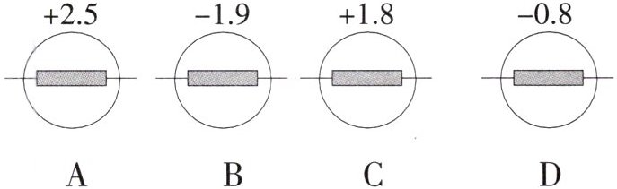 4. 跨学科·物理 老师在他的实验室里检测了A,B,C,D四个湿敏电阻器的质量(单位:g),超过标准质量的记为正,不足标准质量的记为负,结果如图所示,其中最接近标准质量的是(