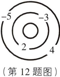 12. 创新意识 一座两道环路的数字迷宫如图所示,外环两个路口的数字分别为$-5,4$,内环两个路口的数字分别为$-3,2$.要想进入迷宫中心需破解密码:两个路口(外环与内环各一个路口)的数相乘,若乘积最大,沿这两个路口前行就可到达迷宫中心,则乘积最大的值是