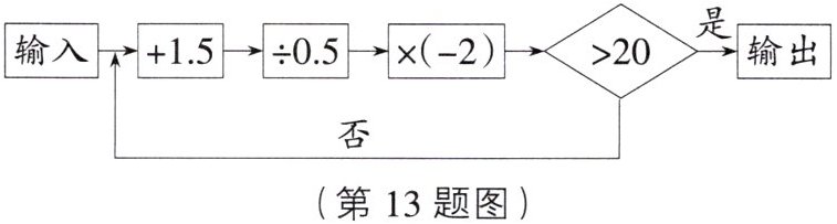 34 [解析]将1代入计算程序,得$(1+1.5)÷0.5×(-2)=-10<20$,将-10代入计算程序,得$(-10+1.5)÷0.5×(-2)=34>20.$