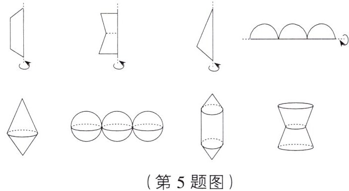 5. 教材P66,T6·习题高仿 如图,下面的立体图形是由上面的哪个平面图形旋转后得到的?请用线连起来。