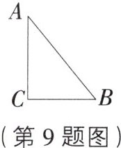 9. 数学文化 约公元前11世纪,人们已经知道了直角三角形“勾三、股四、弦五”(即如果直角三角形的两条直角边长分别是3和4,那么斜边长是5)的知识。事实上,在任意的直角三角形中,必有两条直角边之和大于斜边,如图,$AC+BC>AB$,其数学道理是(
