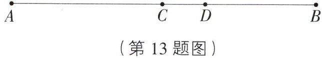 13. 如图,已知$AB = 8\ cm$,$BD = 3\ cm$,$C为AB$的中点,则$CD = $