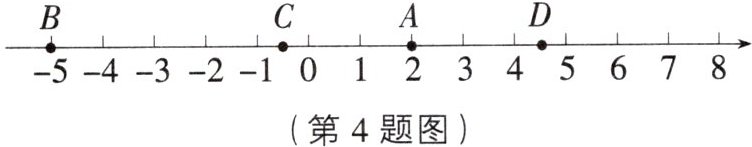 4.[解析]A,B,C,D四点分别表示的数为2,-5,-0.5,4.5;6.5和$-\frac{7}{2}$表示在数轴上如图所示.