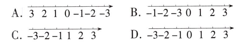 1.D [解析]A.应该正数在右边,负数在左边,故A错误;B.负数的大小顺序不对,故B错误;C.没有原点,故C错误;D.有原点、正方向、单位长度,且单位长度统一,故D正确.