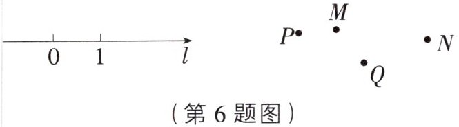 6. 数轴的特征 如图,点 P,M,N,Q 中有一个点在数轴 $ l $ 上,请借助直尺判断该点是( )