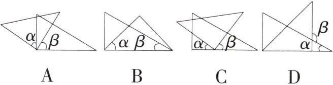 9. 将一副三角板按下列位置摆放,其中∠α与∠β一定互余的是 (