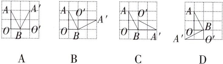 7. 如图,在方格纸中,将直角三角形AOB绕点B按顺时针方向旋转90°后得到直角三角形A'O'B,则下列四个图形中正确的是(
