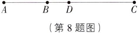 8. 如图,延长线段 AB 到点 C,使 BC= 2AB,D 是线段 AC 的中点,若 AB= 5,求 BD 的长.