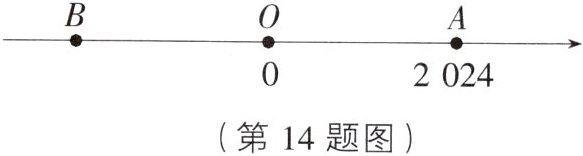 14.B [解析]因为OA=OB,点A表示的数是2024,所以OB=2024.因为点B在数轴的负半轴上,所以点B表示的数为-2024.