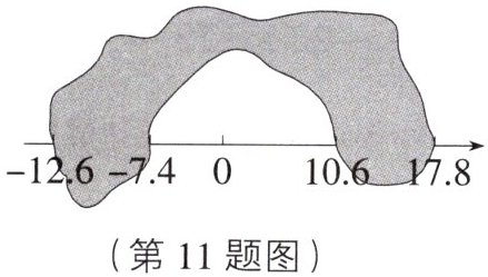 11.12 [解析]根据数轴的特点,-12.6到-7.4之间的整数有-12,-11,-10,-9,-8;10.6到17.8之间的整数有11,12,13,14,15,16,17,所以被墨渍盖住的整数共有12个.