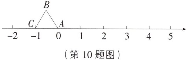 10. 规律探究 等边三角形 $ ABC $ 在数轴上的位置如图所示,点 $ A $, $ C $ 对应的数分别为 0 和 -1,若三角形 $ ABC $ 绕顶点沿顺时针方向在数轴上连续翻转,翻转 1 次后,点 $ B $ 所对应的数为 1,则连续翻转若干次后,数 2 024 对应的点为(