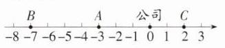 (1)以公司为原点,向东为正方向,以 1 km 为 1 个单位长度画出数轴,并在该数轴上表示出 $ A $, $ B $, $ C $ 三地的位置.