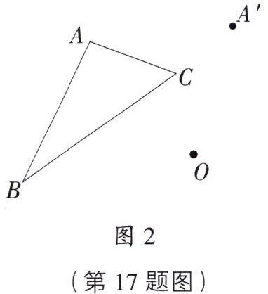(2)如图2,三角形ABC绕点O旋转,顶点A的对应点为$A'$,请画出旋转后的图形。