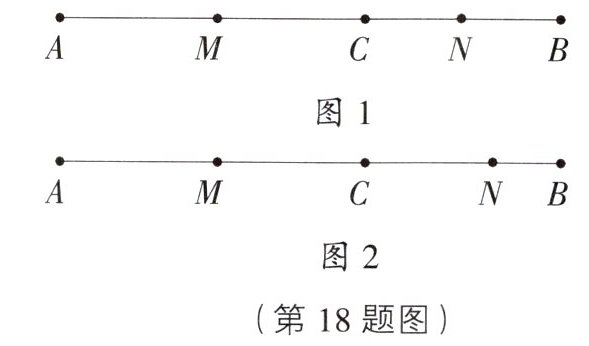 18. (8分)已知点C在线段AB上,AC= 8 cm,CB= 6 cm,M为线段AC的中点。