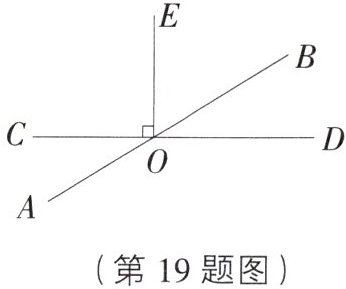 19. (8分)如图:已知直线AB,CD相交于点O,$∠COE= 90^{\circ}$。