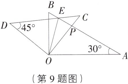 【解析】∠AOC=∠BOD,但并不确定度数,故①不正确;由题图可知,AB与OC交于点P,因为∠CPE=∠APO,∠C=45°,∠A=30°,∠CEA+∠CPE+∠C=∠AOC+∠APO+∠A=180°,所以∠AOC - ∠CEA=15°,故③正确;OB平分∠DOC,则∠COB = $\frac{1}{2}$∠COD,因为∠DOC=∠AOB,所以∠COB = $\frac{1}{2}$∠AOB,所以OC平分∠AOB,故④正确.所以正确的为②③④.