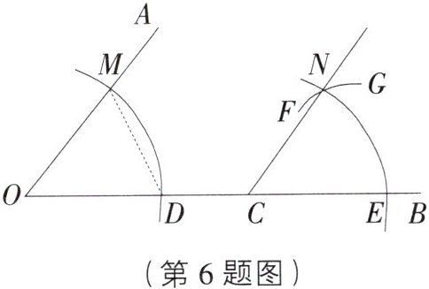 6. 如图,点$C在\angle AOB的OB$边上,用尺规作出了$\angle NCB= \angle AOB$,作图痕迹中,弧$FG$是(