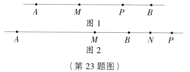 23. (12分)如图1,线段$AB的长为24$个单位长度,动点$P从点A$出发,以每秒$2个单位长度的速度沿射线AB$运动,$M为AP$的中点,设点$P的运动时间为x\ s$。
