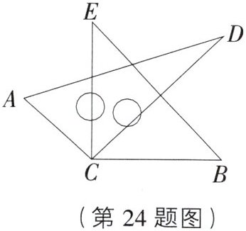 24. (14分)如图,将两块三角板的直角顶点重合。