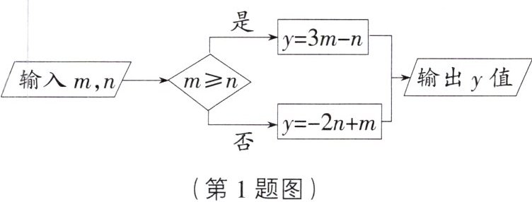 1. 根据如图所示的运算程序计算 $ y $ 的值,若输入 $ m = - 2 $,$ n = 2 $,则输出 $ y $ 的值是(