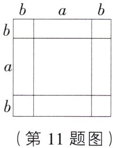 11. 如图,已知 $ a > 0 $,$ b > 0 $,若 $ a + 2 b = 6 $,$ a ^ { 2 } + 4 b ^ { 2 } = 20 $,请借助图直观分析,计算 $ a b $ 的值.