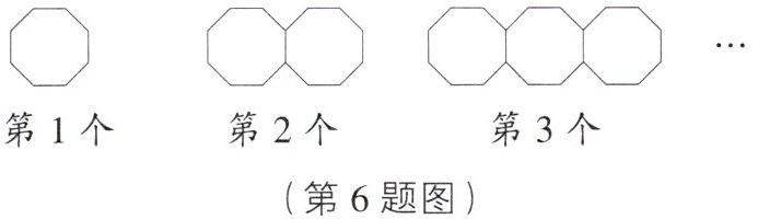 6. 如图所示的图案是用长度相同的火柴按一定规律拼搭而成的,第 1 个图案需 8 根火柴,第 2 个图案需 15 根火柴,……,按此规律,第 10 个图案需要的火柴数量是(