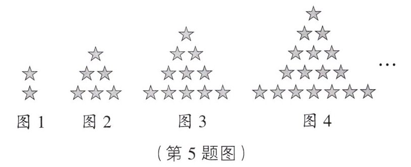 5. 如图,观察下列一组图形,其中图 1 中共有 2 颗星,图 2 中共有 6 颗星,图 3 中共有 11 颗星,图 4 中共有 17 颗星,……,按此规律,图 10 中星星的颗数是(