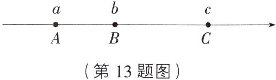 13. 如图,数轴上点$A,B,C分别表示非零有理数a,b,c$,若$|a| + |b| + |c| = (-a) + (-b) + c$,那么数轴的原点应该在(