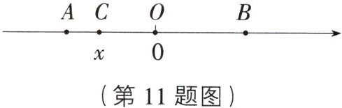 11. 如图,数轴上四点$A$,$C$,$O$,$B$中,其中$O$为原点,且$AC = 3$,$OA = OB$,若点$C表示的数为x$,则点$B$表示的数为(