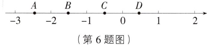 6. 如图,数轴上 $A,B,C,D$ 四个点表示的数中,比 $-2$ 小的数对应的点是(