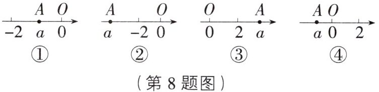 8. 如图,下列四个数轴上的点 $A$ 都表示数 $a$,其中,一定满足 $|a|>|-2|$ 的是(