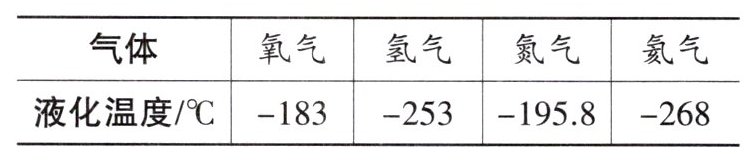 A [解析]因为-268℃<-253℃<-195.8℃<-183℃,所以液化温度最低的气体是氦气.