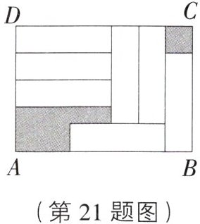 21. (7分)如图,7张全等的小长方形纸片(既不重叠也无空隙)放置于长方形$ABCD$中,设小长方形的长为$a$,宽为$b(a > b)$,求两块阴影部分的周长和.