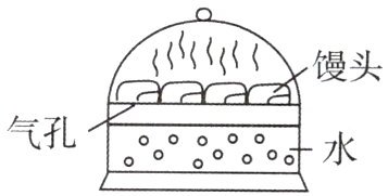 10. 日常生活 在我国北方,馒头是人们日常主食之一。如图所示,蒸馒头时,加热使水汽化,产生高温水蒸气,水蒸气接触到馒头时