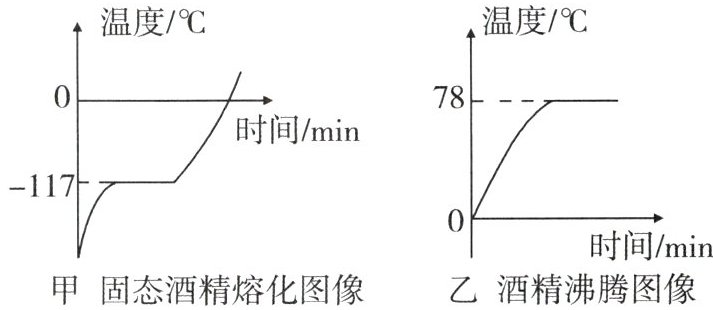 6. (2024·重庆大渡口五校联考)如图所示,甲、乙分别是酒精在 1 个标准大气压下熔化和沸腾时温度随时间变化的图像,下列说法正确的是(