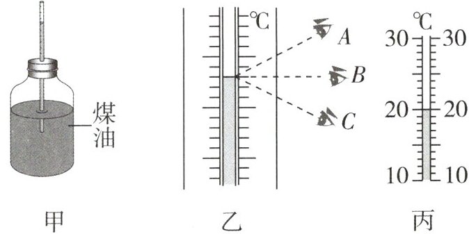 (选填“A”“B”或“C”)方法是正确的;图丙中温度计的示数为20