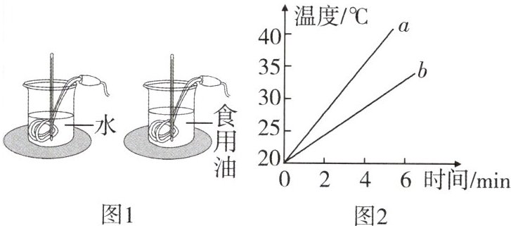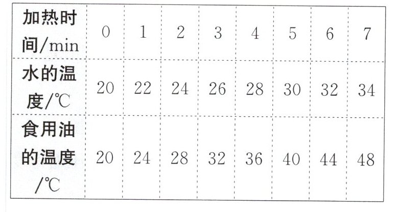 5. 小明实验时记录数据如下表所示,若使相同质量的水和食用油升高相同的温度,