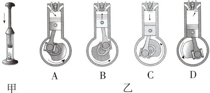 4. 图甲中,迅速向下压活塞,能量的转化情况是