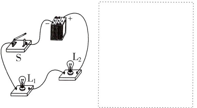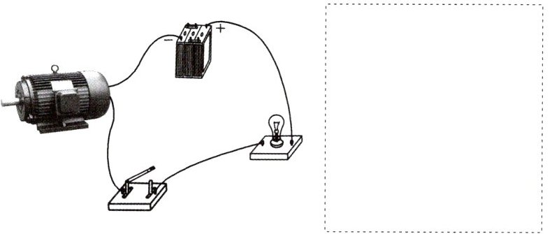 14. 如图是小灯泡和电动机等组成的电路,请根据实物图,在虚线框内画出对应的电路图.