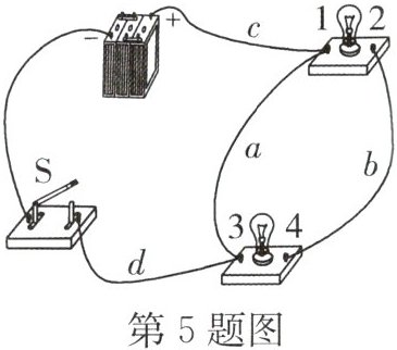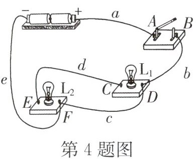 4. 如图所示为某同学连接的电路,仅改变一根导线使两灯并联,下列做法:①仅将导线b与D接线柱相连的一端改接至C;②仅将导线c与D接线柱相连的一端改接至C;③仅将导线e与F接线柱相连的一端改接至C;④仅将导线e与F接线柱相连的一端改接至E.可行的是(