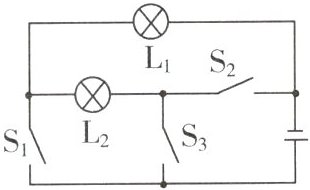 3. 如图所示,要使$L_1$和$L_2$串联在电路中,应只闭合开关