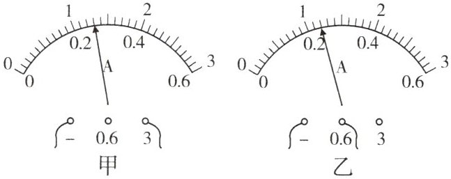 $\mathrm{A}$,乙电流表的示数是0.24