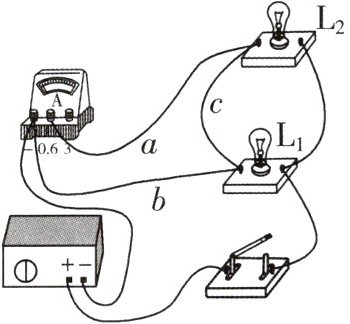 D.撤掉导线$c$,电流表测量的是通过小灯泡$\mathrm{L}_{2}$的电流