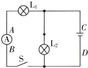 11. 如图所示,根据电路图中标出的电流方向,在图中的$A$、$B和C$、$D$间填上电池或电流表的符号. 要求: