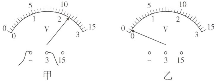 $\mathrm{V}$;若使用前出现如图乙所示的情况,则原因是电压表未调零