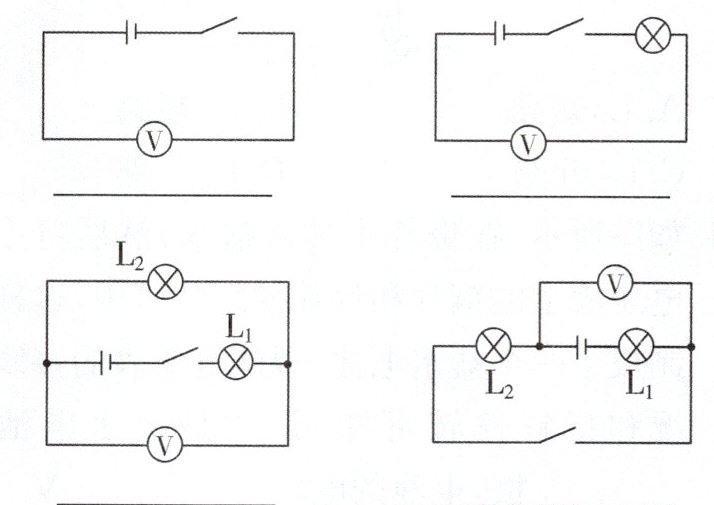 6. 在横线上写出下列电路图中闭合开关后电压表的测量对象。