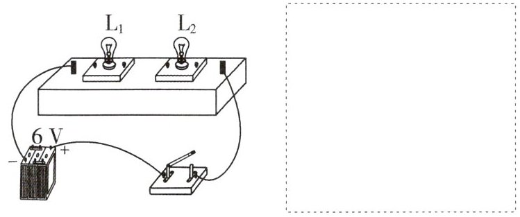 8. 科学思维 如图所示,$ L_1 $、$ L_2 $ 的连接方式未知,电源电压恒为 $ 6 \, V $。闭合开关,两灯泡同时亮;断开开关,两灯泡同时熄灭。请根据下列操作及观察到的现象,完成以下题目。