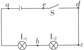 $2. $科学思维$ $如图所示$,$电源电压$ U = 6 V,$当开关$ S $闭合后$,$小灯泡$ L_1 $和$ L_2 $都不亮$. $现用一电压表检测故障$,$已测得$ U_{ac} = U_{ad} = U_{ae} = 6 V,U_{ab} = 0 V,$若电路中只有一处故障$,$那么下列判断正确的是$($