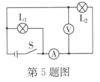 5. (2024·济南章丘诺德中学期中)如图所示,S 闭合后$,L_1、$$L_2 $都发光,两个电表都有示数,突然一盏灯亮,一盏灯不亮,且电表示数都变为 0,则该电路中可能故障是(